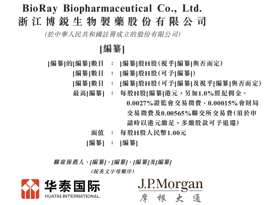 Zhejiang BioRay Biopharmaceutical Co., Ltd. (hereinafter referred to as "BioRay Biopharmaceutical") recently submitted its prospectus to the Hong Kong Stock Exchange, seeking a listing on the Main Board with Huatai International and J.P. Morgan as joint sponsors.