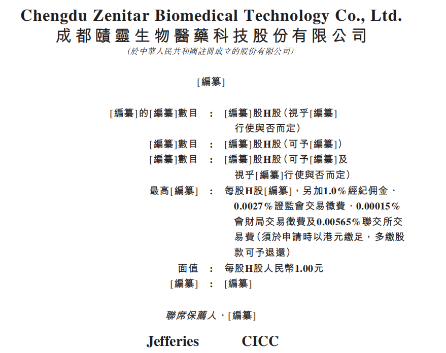 Chengdu Zenitar Biomedical Technology Co., Ltd. (hereinafter referred to as "Zenitar Biotech") recently submitted its prospectus to the Hong Kong Stock Exchange, seeking a listing on the Main Board with Jefferies and CICC as joint sponsors.
