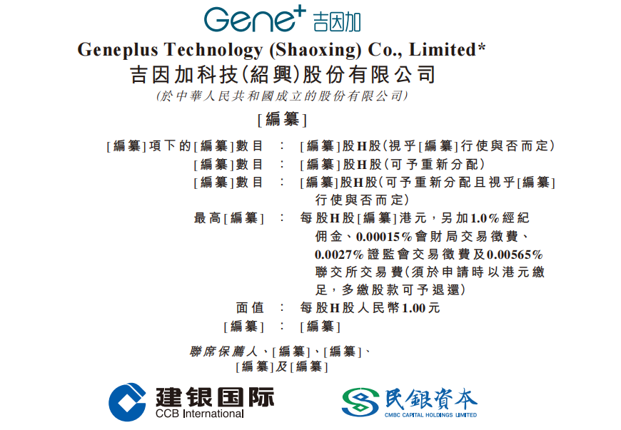 近日,吉因加科技(绍兴)股份有限公司 (简称"吉因加”)在港交所递交招股书,拟在香港主板挂牌上市,联席保荐人为建银国际、民银资本。