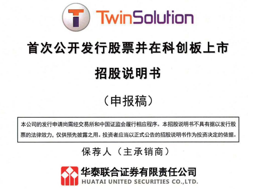 近日,上海韬盛电子科技股份有限公司TwinSolution Technology (Shanghai) Co., Ltd.(简称“韬盛科技”)日前递交招股书,准备在科创板上市,保荐机构为华泰联合证券。