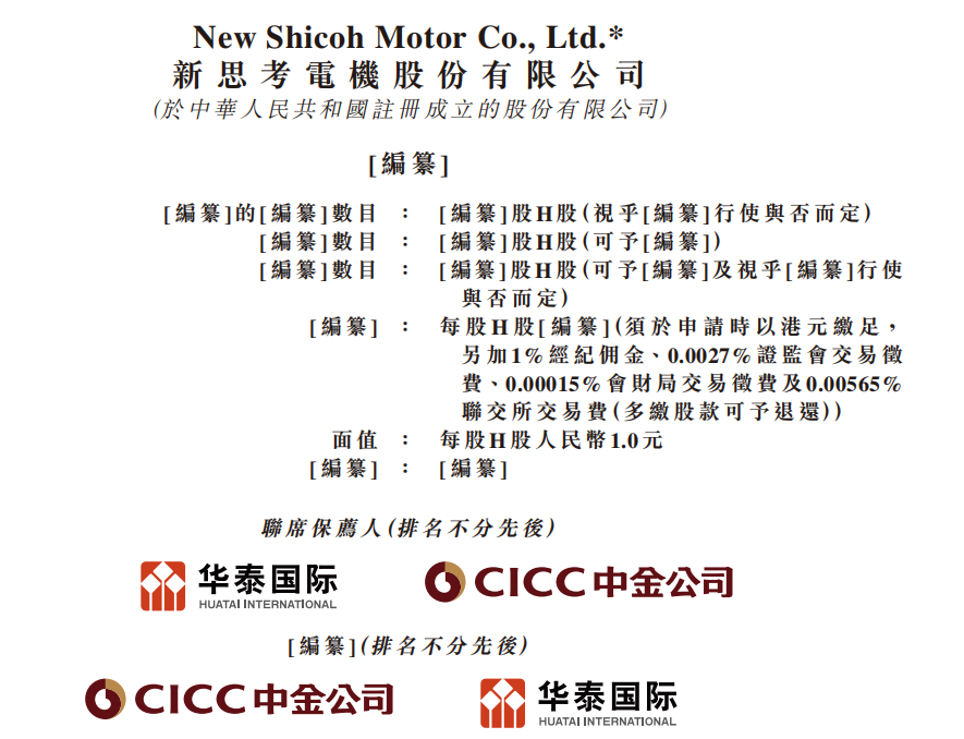 近日,新思考电机股份有限公司 New Shicoh Motor Co., Ltd.(简称"新思考电机")向港交所递交招股书,拟在香港主板挂牌上市,中金公司与华泰国际为联席保荐人。